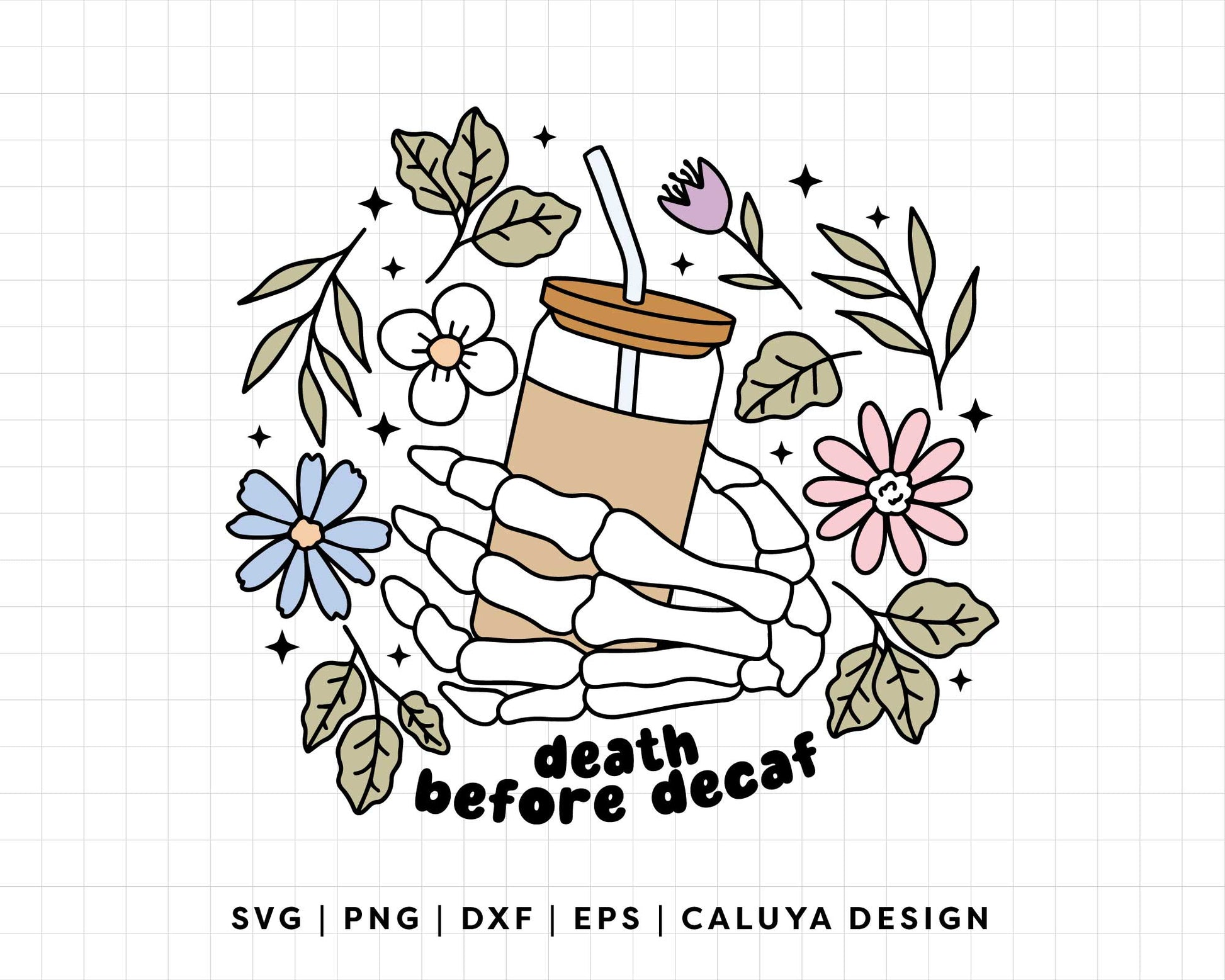 Sip on some creative inspiration with our FREE Death Before Decaf SVG, paired perfectly with a splash of colored floral coffee – ideal for your next Cricut craft adventure! ☕🌸