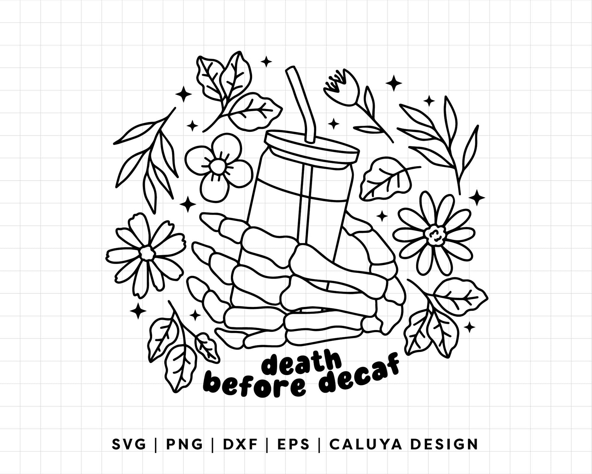 FREE Death Before Decal SVG | Outline Floral Coffee SVG