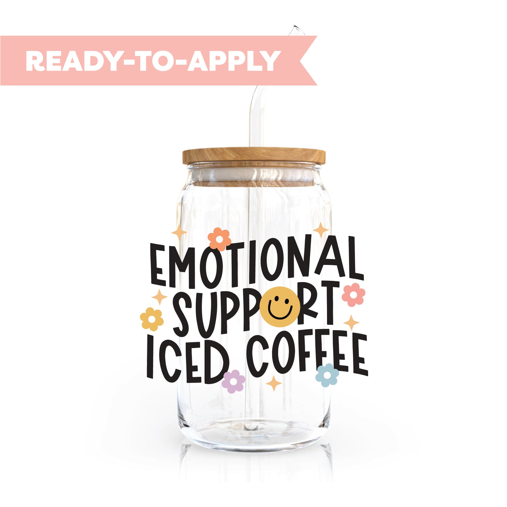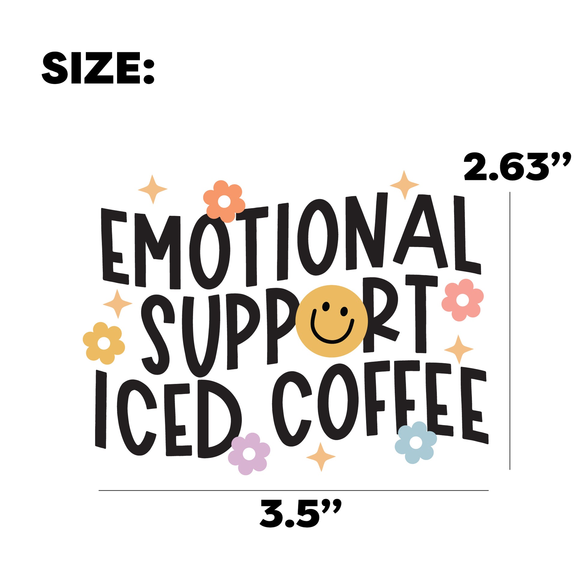 Find your daily dose of emotional support with our UV DTF transfer sticker—because it's not just iced coffee, it's your caffeinated companion! sparkles