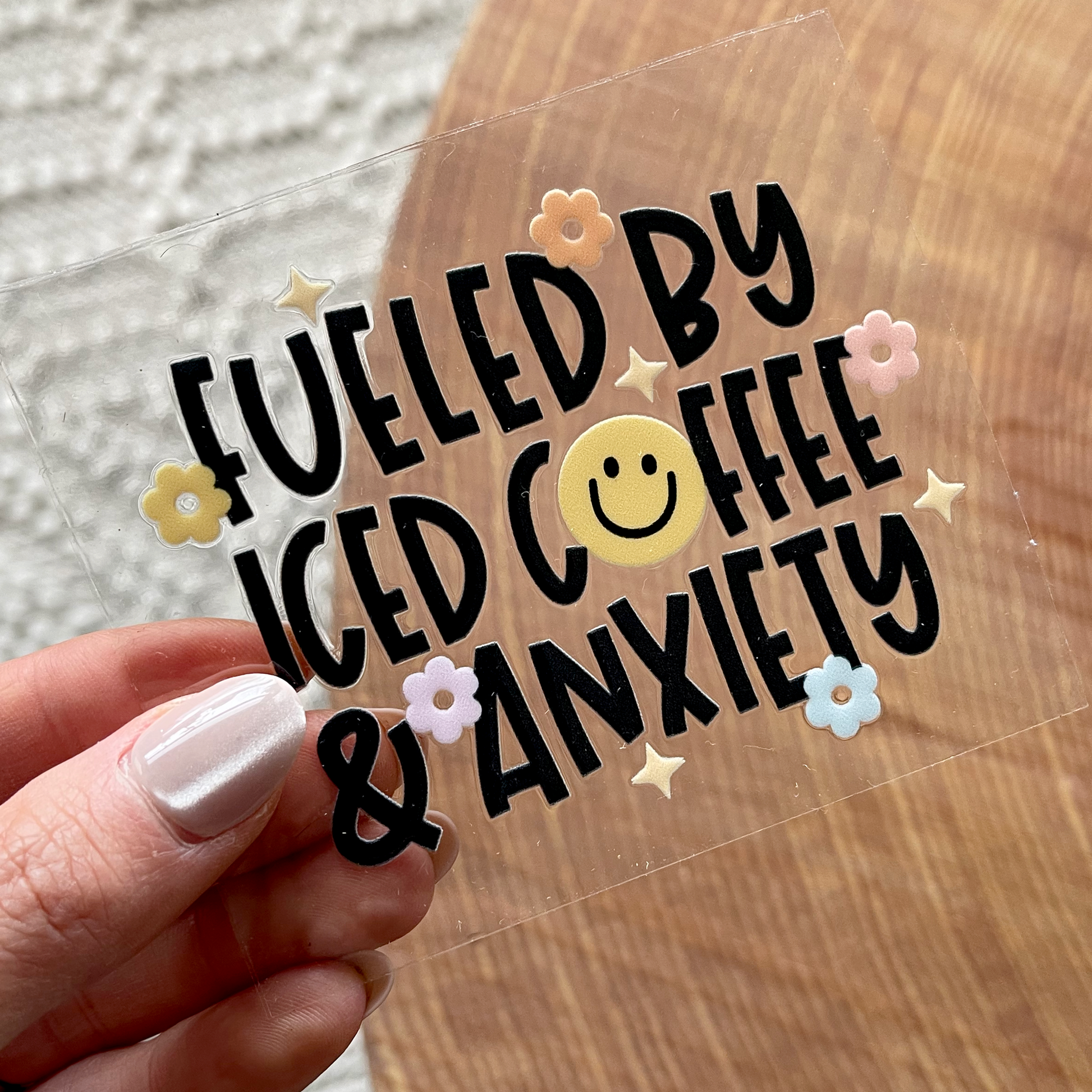 UV DTF Transfer | Fueled By Iced Coffee & Anxiety