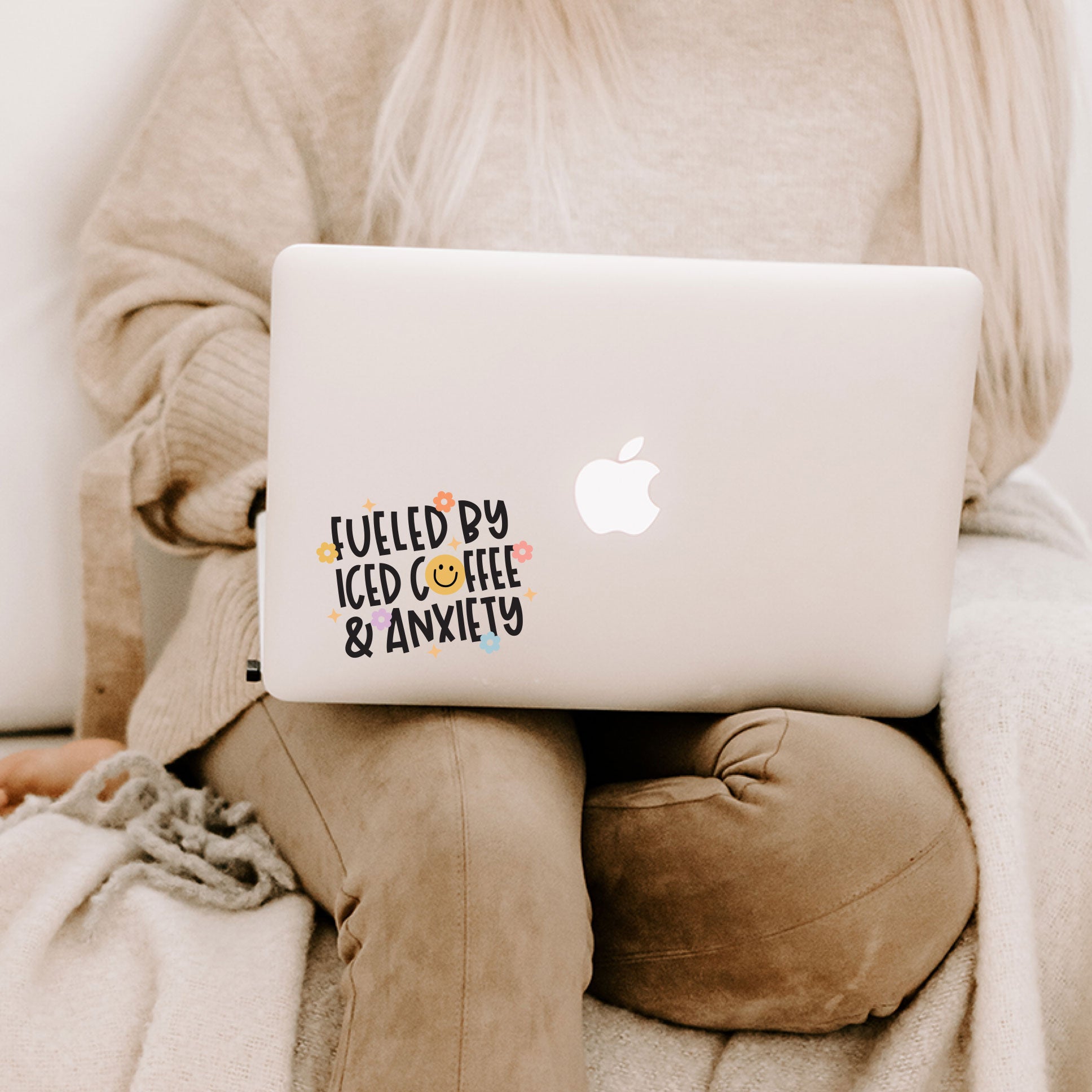 The transfer "Fueled by Iced Coffee and Anxiety" is great! It was a gift and my friend was so excited to get it!
