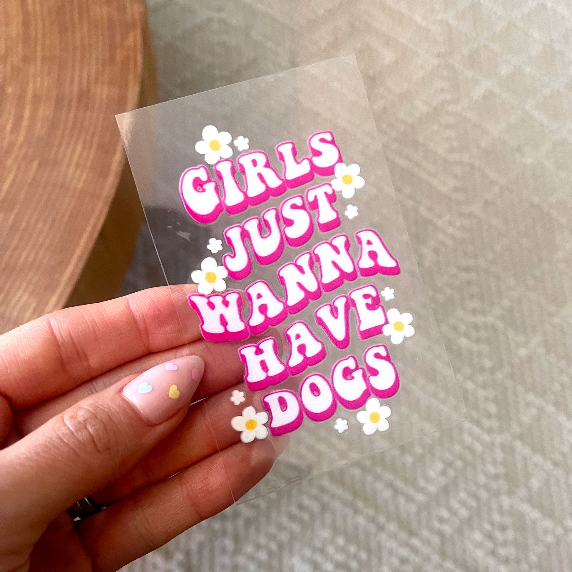 Unleash the paw-some vibes on your cup or surface with our UV DTF Transfer: 'Girls Just Wanna Have Dogs'—because canine companionship and crafting go paw in paw! 🐾✨
