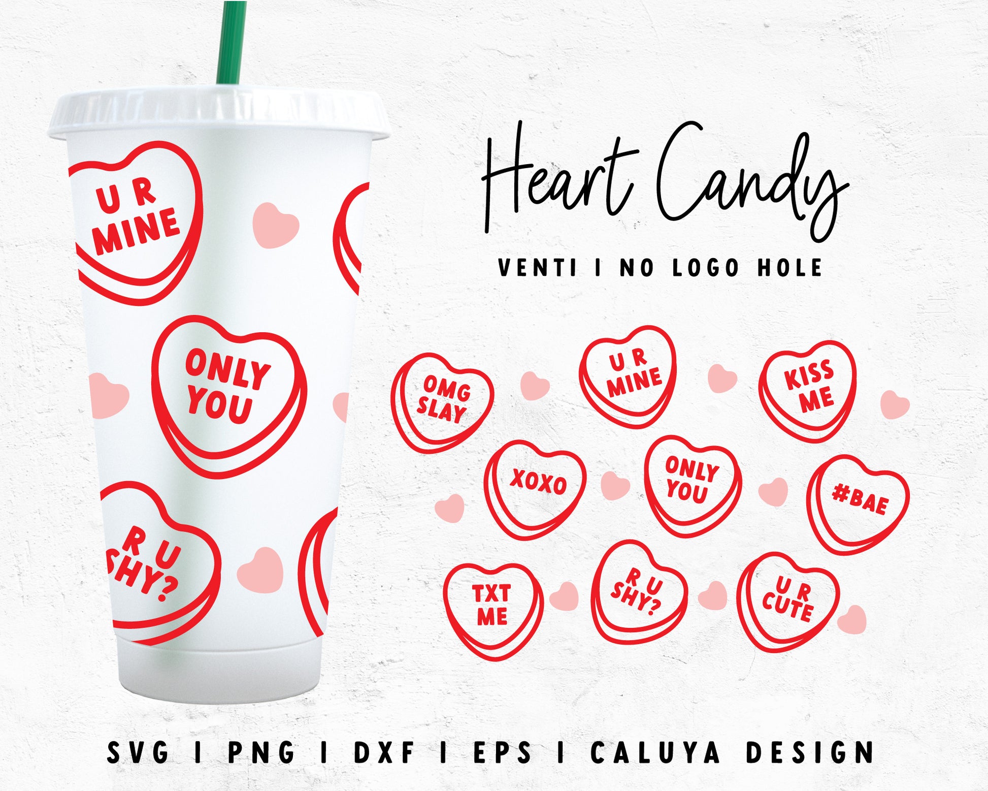 Venti Cup No Hole Wrap Heart Candy Outline SVG