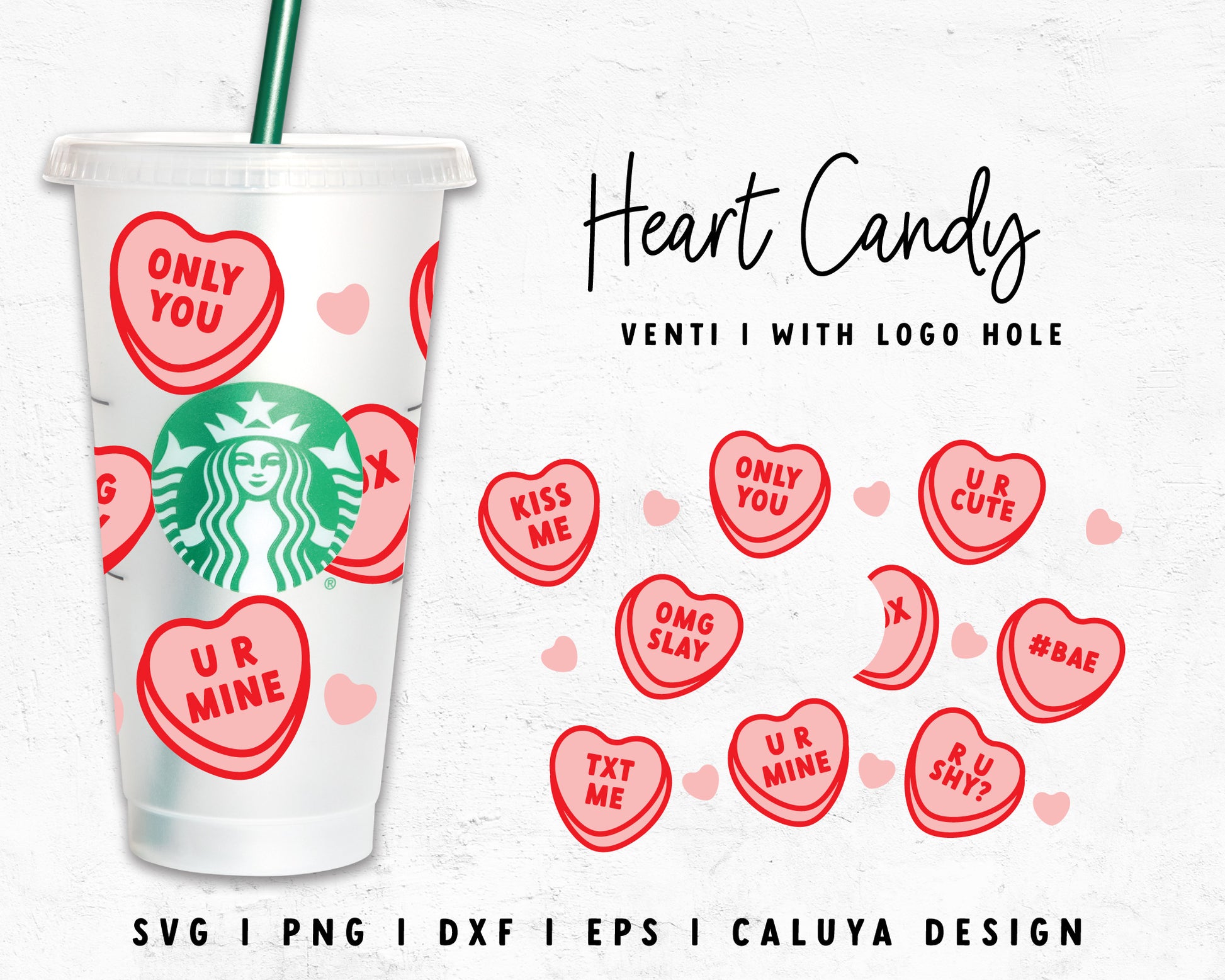 Venti With Hole Valentine Heart Candy Tumbler Wrap SVG | Valentine Glass Cap Wrap SVG